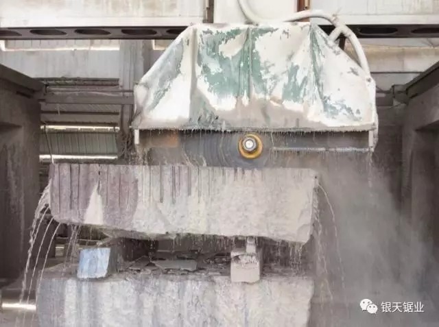 針對以上情況,我國科技人員將板材切割機(jī)理巧妙應(yīng)用于礦山開采,取得了良好效果。其基本原理為:礦山表而鋪設(shè)軌道,通過主機(jī)帶動超大型金剛石圓鋸片(Ф2000~3500mm)高速旋轉(zhuǎn),實現(xiàn)軌切割。由于該方式投入少、效率高、安全、環(huán)保、節(jié)能及開采成本低等優(yōu)點,廣泛受到礦山開采企業(yè)青睞。
